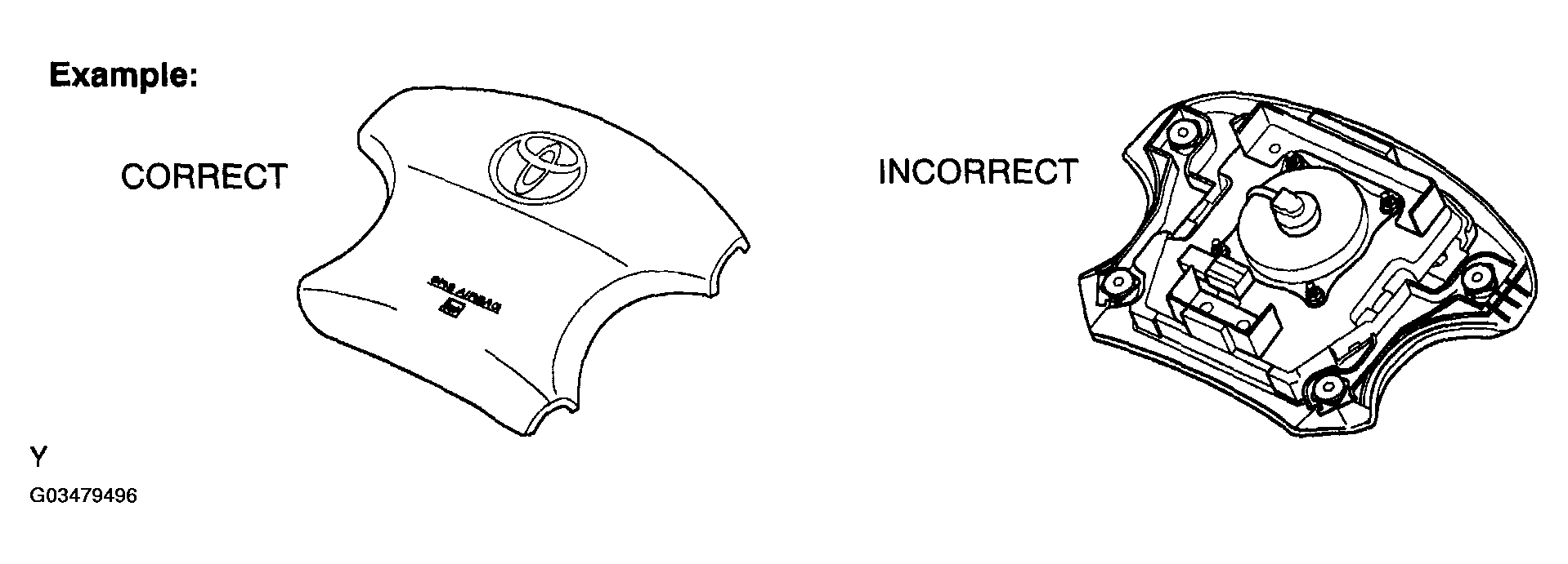 Fig 12: Identifying Correct & Incorrect Horn Button Assembly (With Airbag)