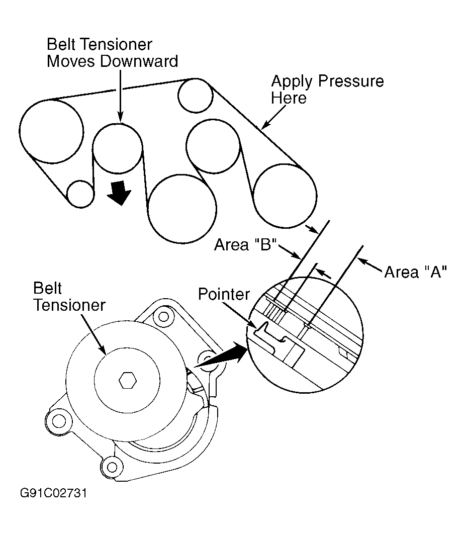 Automatic belt tension is used to provide proper tension on serpentine drive belt. No adjustment is necessary.