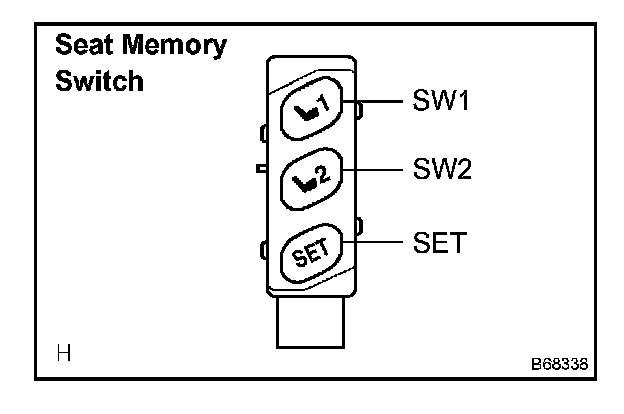 k. Check that the seat does not move (the seat position is not recorded) when the SW1 switch or the SW2 switch is pressed after the SW1 switch and SW2 switch are pressed together while the SET switch is held down.