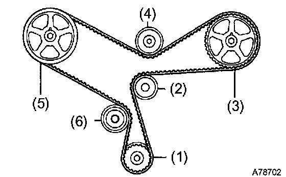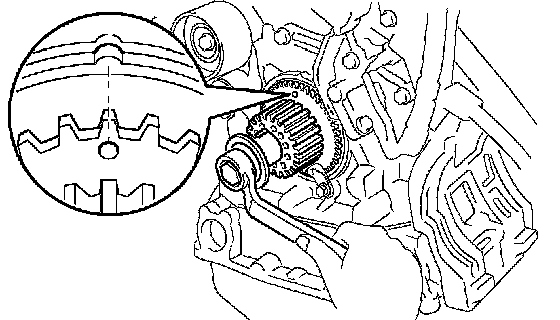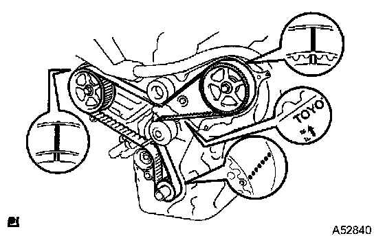 ^ If there is a trace of water and/or oil on the timing belt, repair the leakage and install a new timing belt.