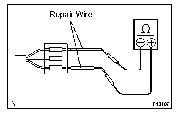 b. If it is impossible to check resistance from the back of the connector, use a repair wire to check it.