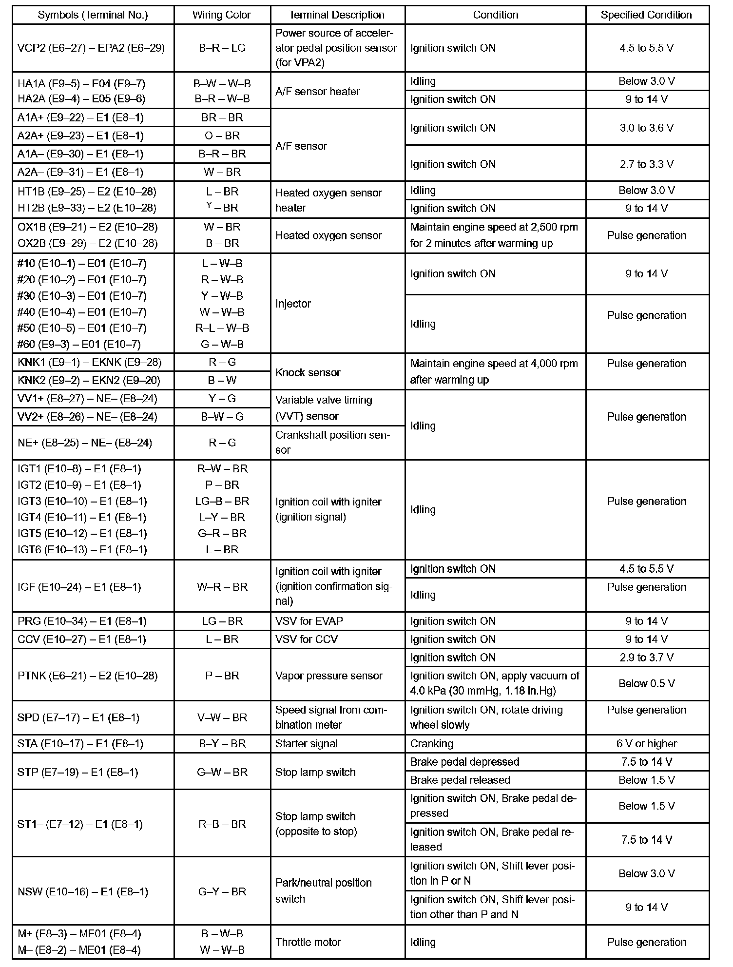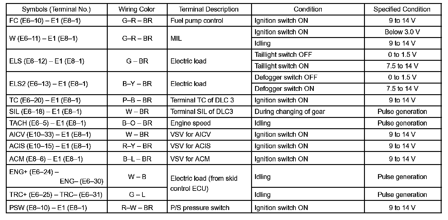 Pinout Values and Diagnostic Parameters
