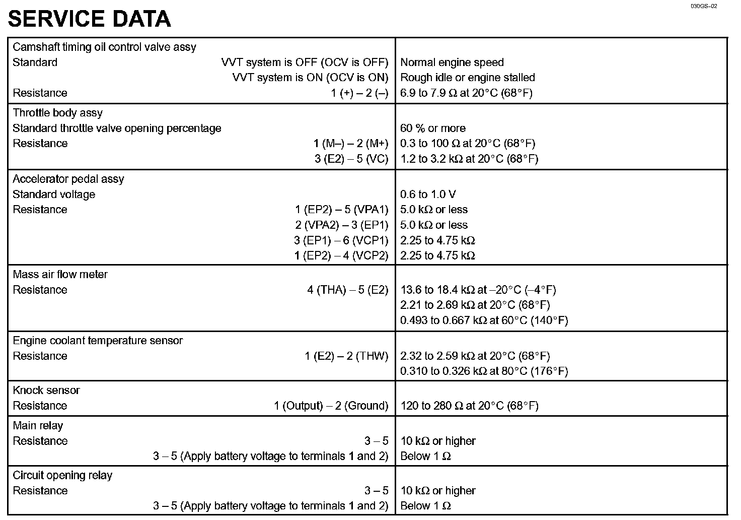 Engine Control System - Service Data: