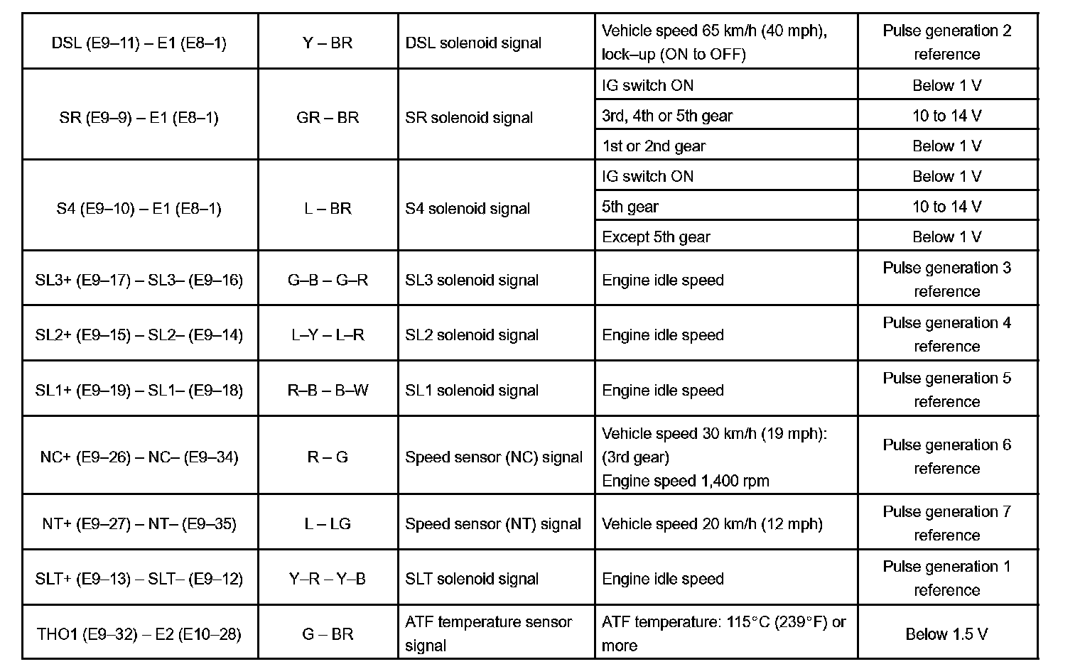 Pinout Values and Diagnostic Parameters