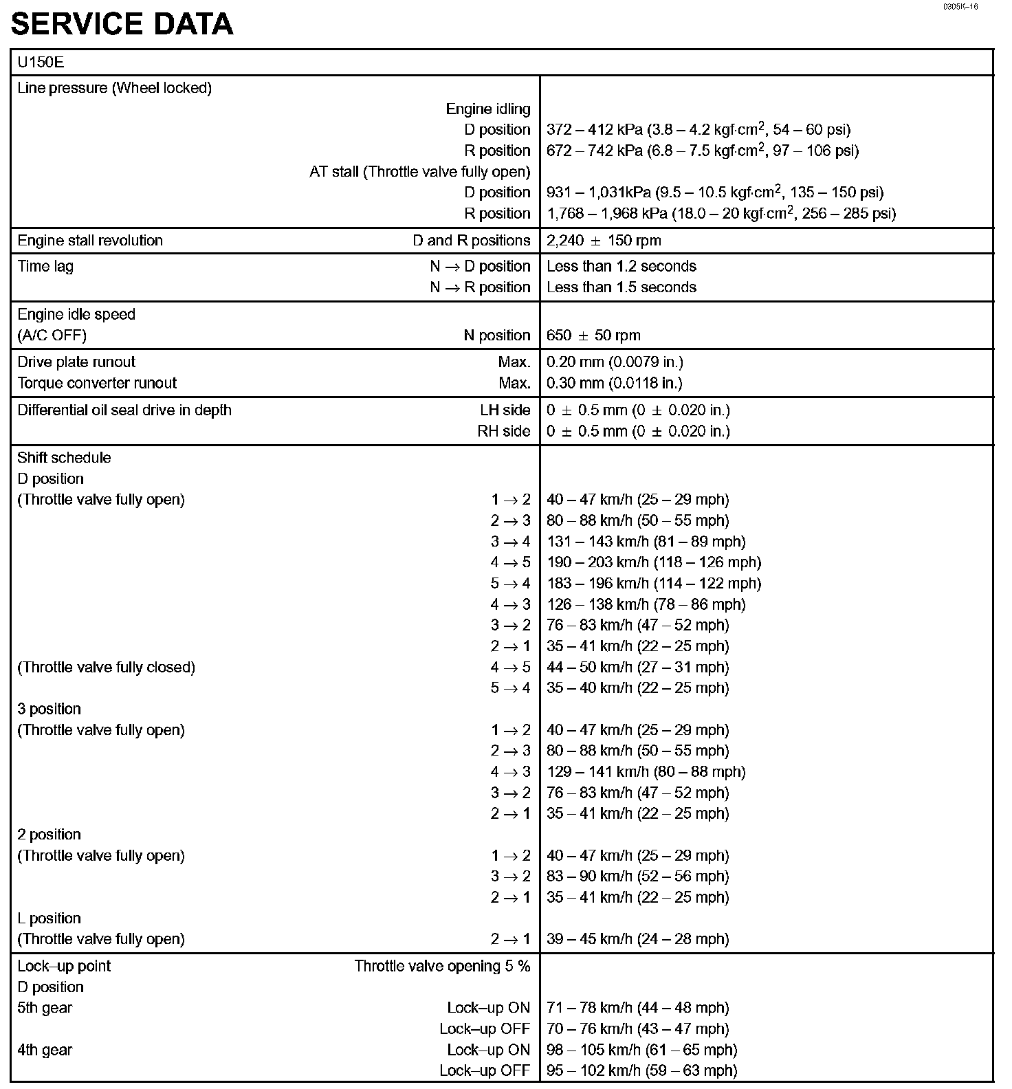 Automatic Transmission / Transaxle - Service Data: