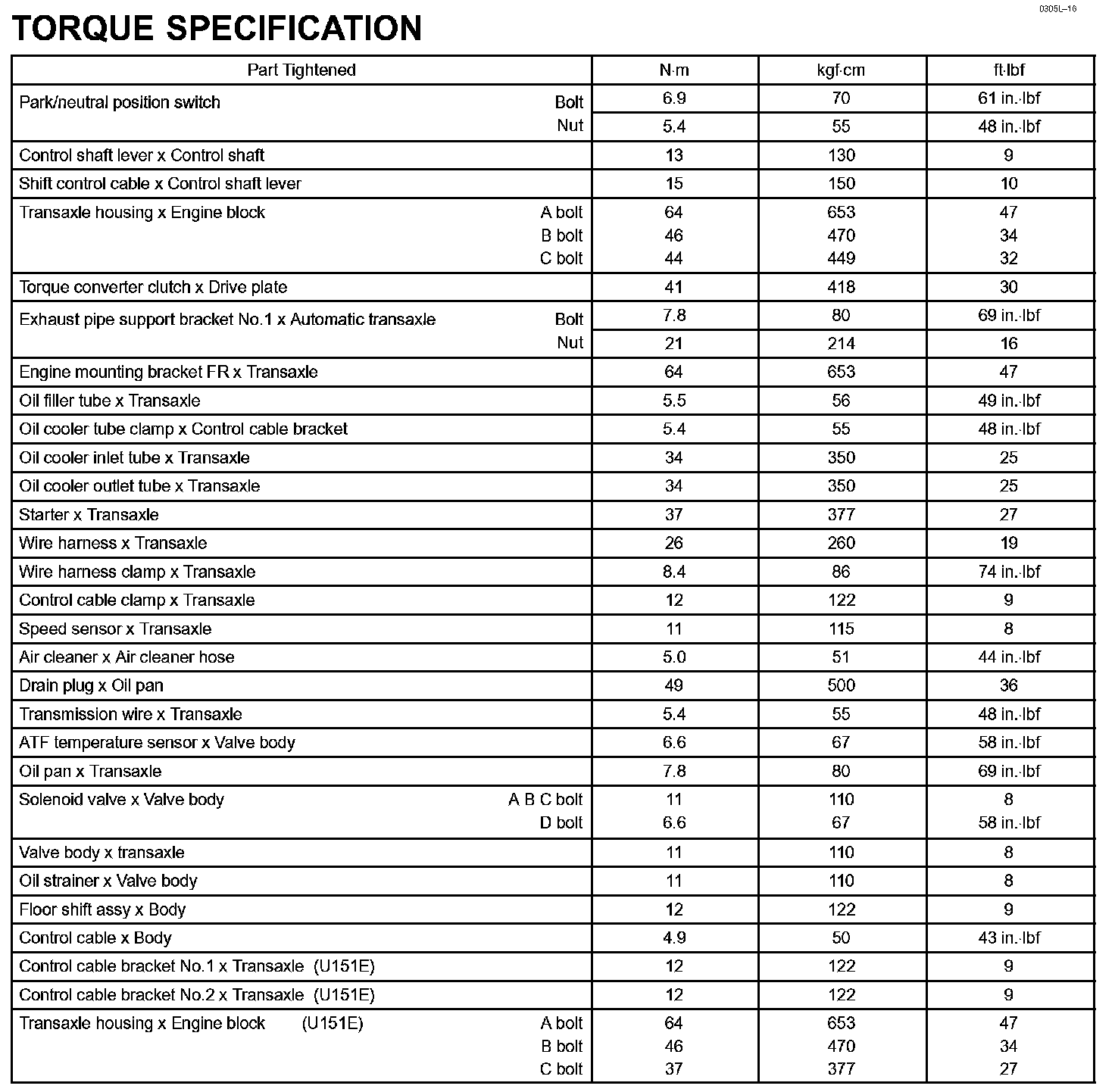 Automatic Transmission / Transaxle - Torque Specification: