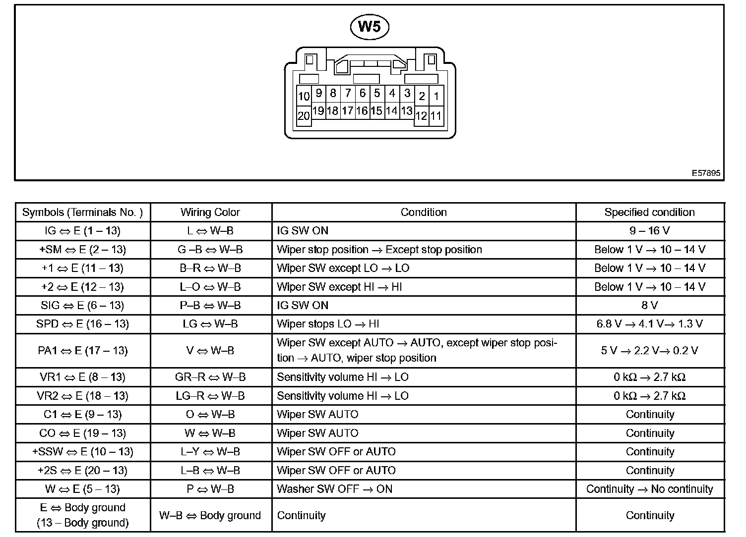 Terminals Of Control Module/Pinouts - Windshield Wiper Relay Assy: