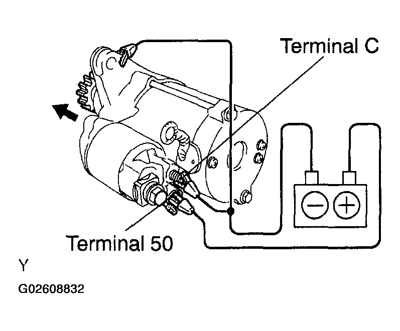 - Disconnect the negative (-) lead from the switch body. Check that the clutch pinion gear returns.