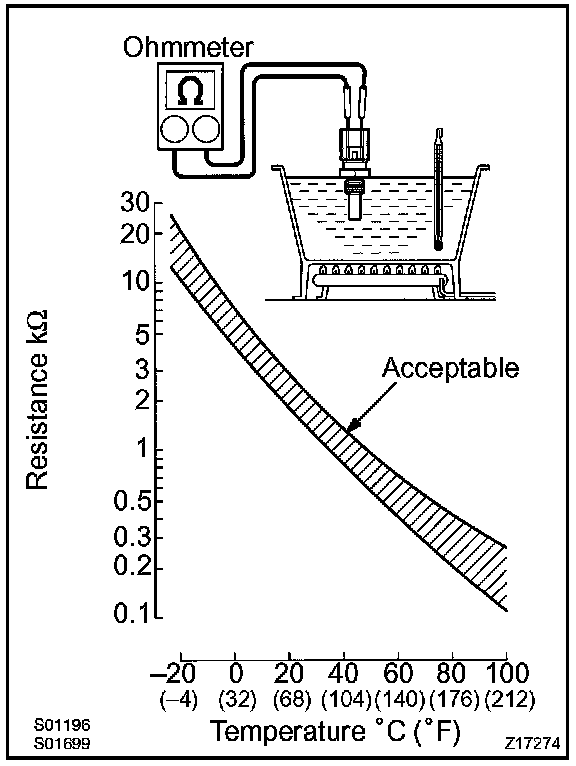 Coolant Temperature Sensor/Switch (For Computer): Testing and Inspection
