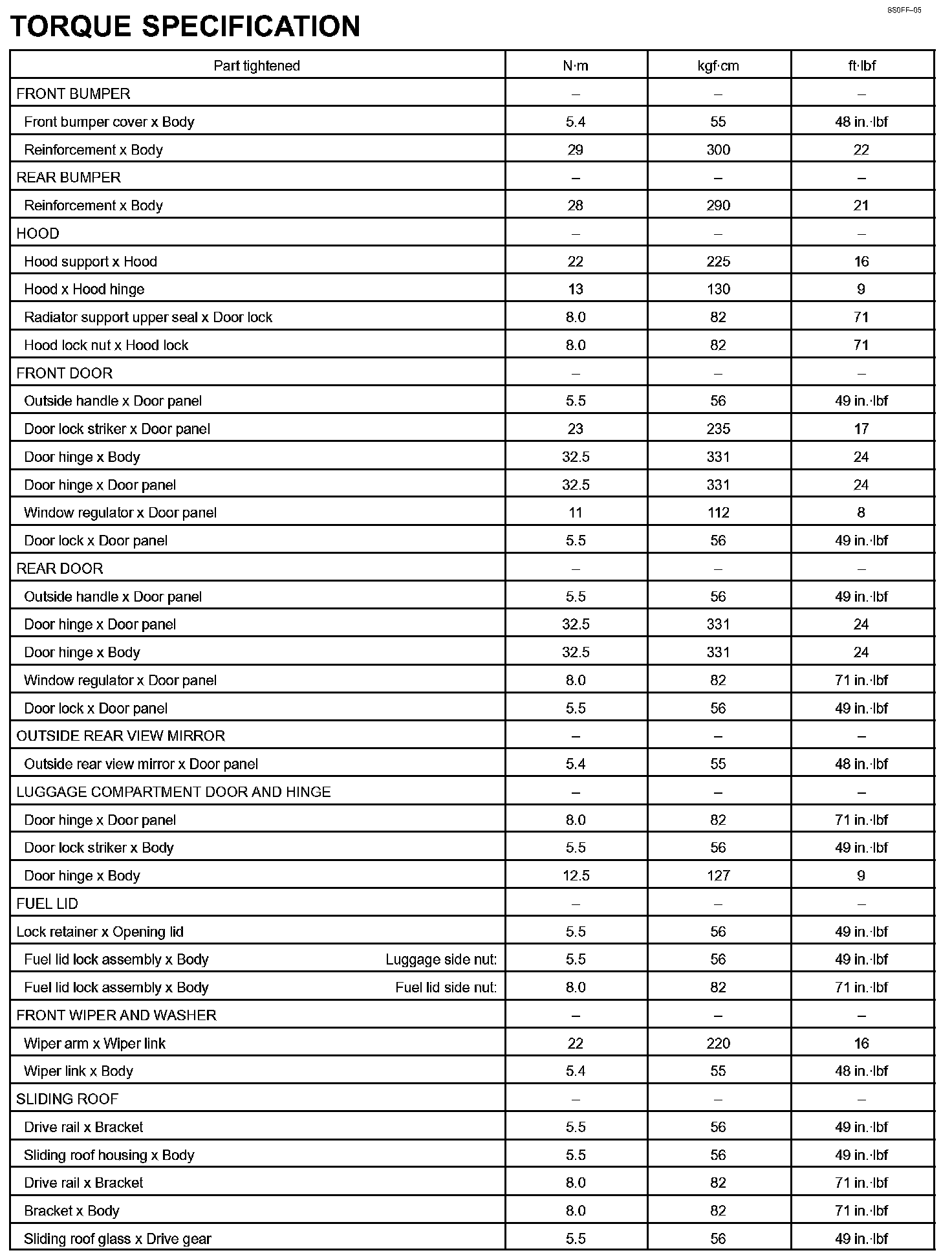 Body - Torque Specification Part 1: