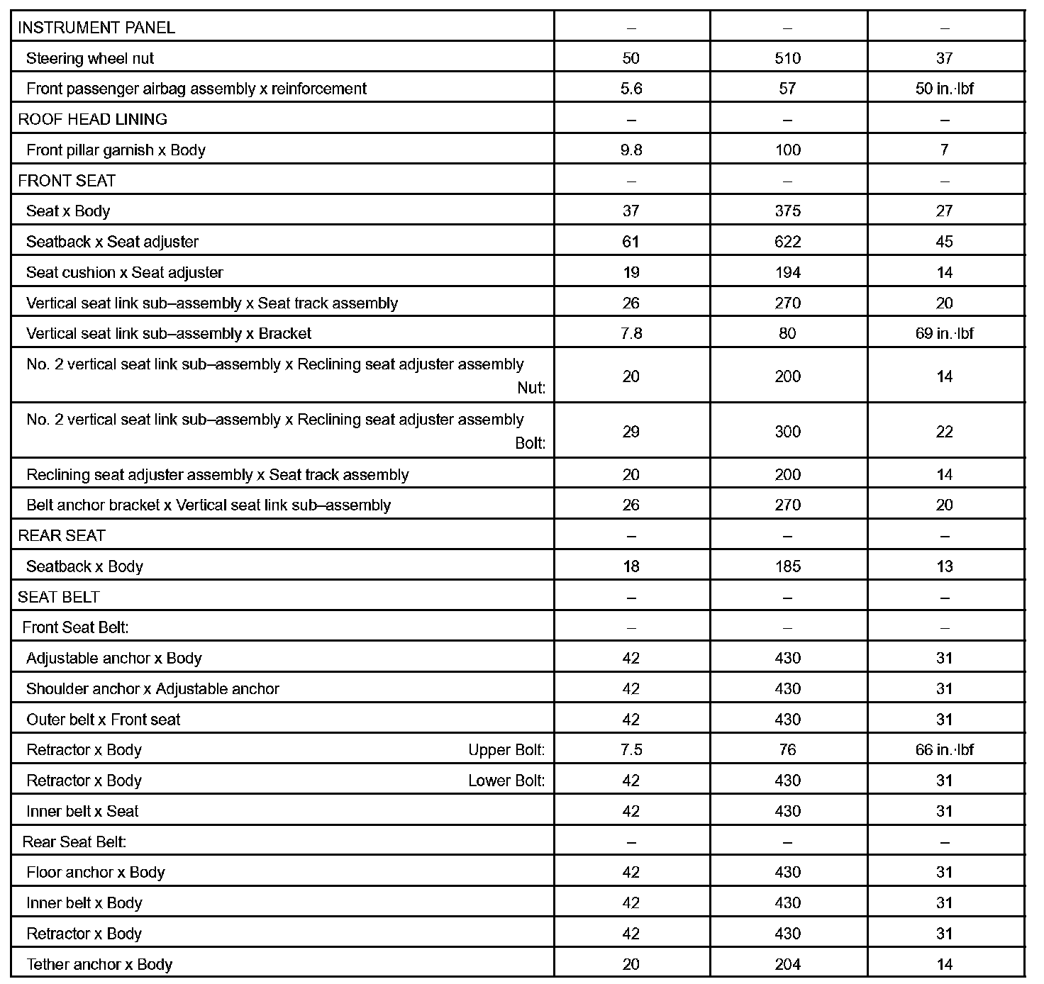 Body - Torque Specification Part 2: