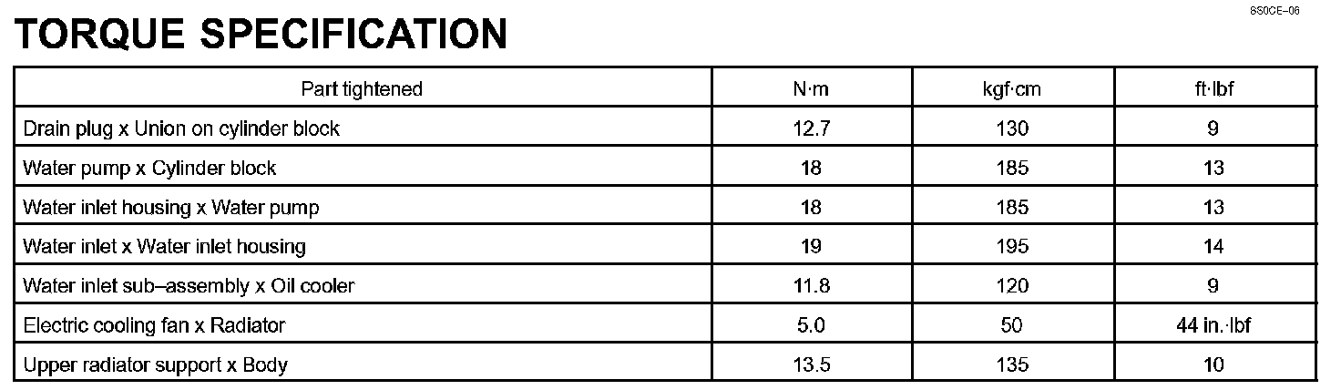 Cooling - Torque Specification: