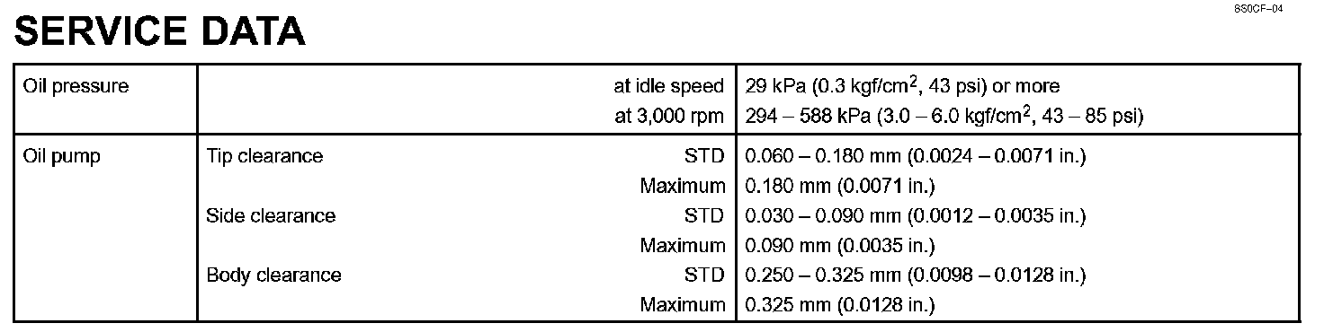 Lubrication - Service Data: