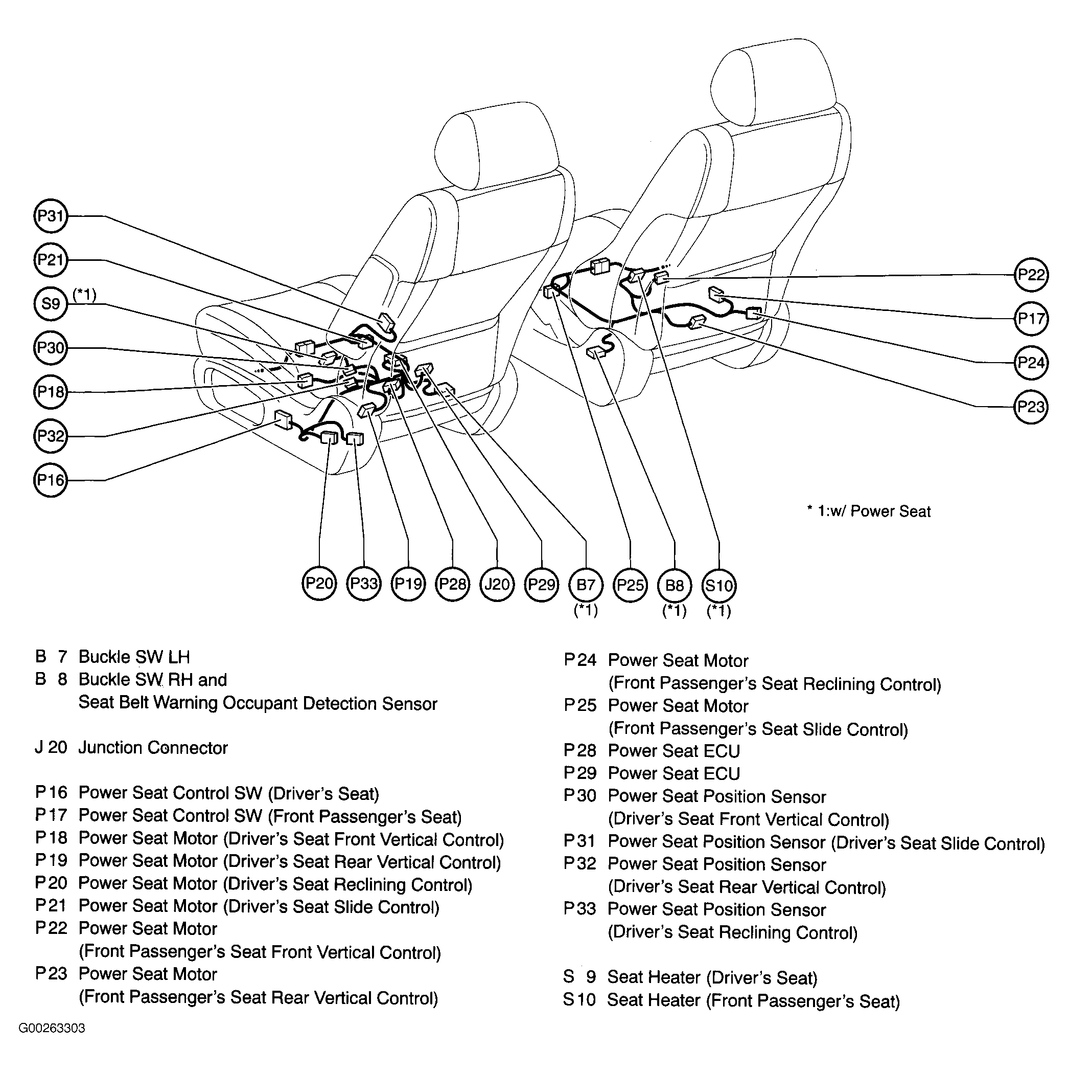 | Power Seat ECU (Right) | Below right front seat. See Figure. |