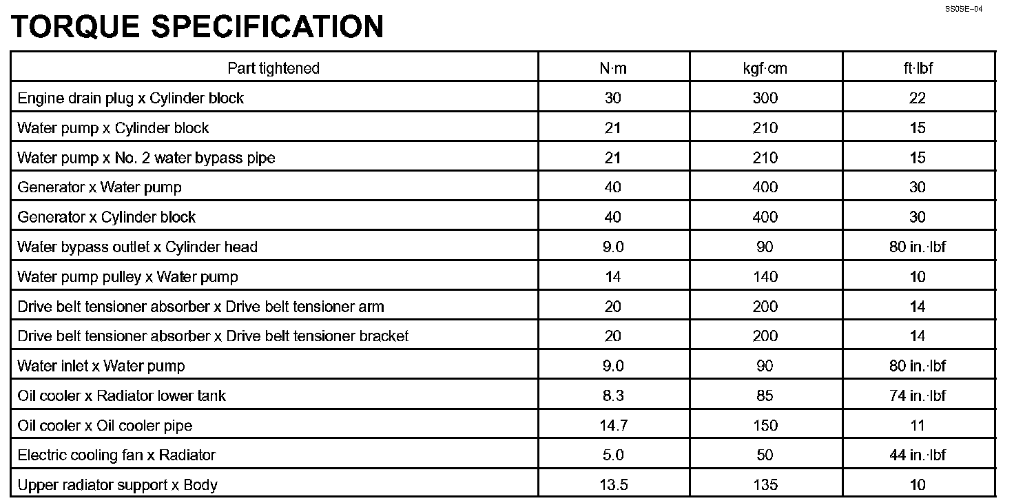 Cooling - Torque Specification: