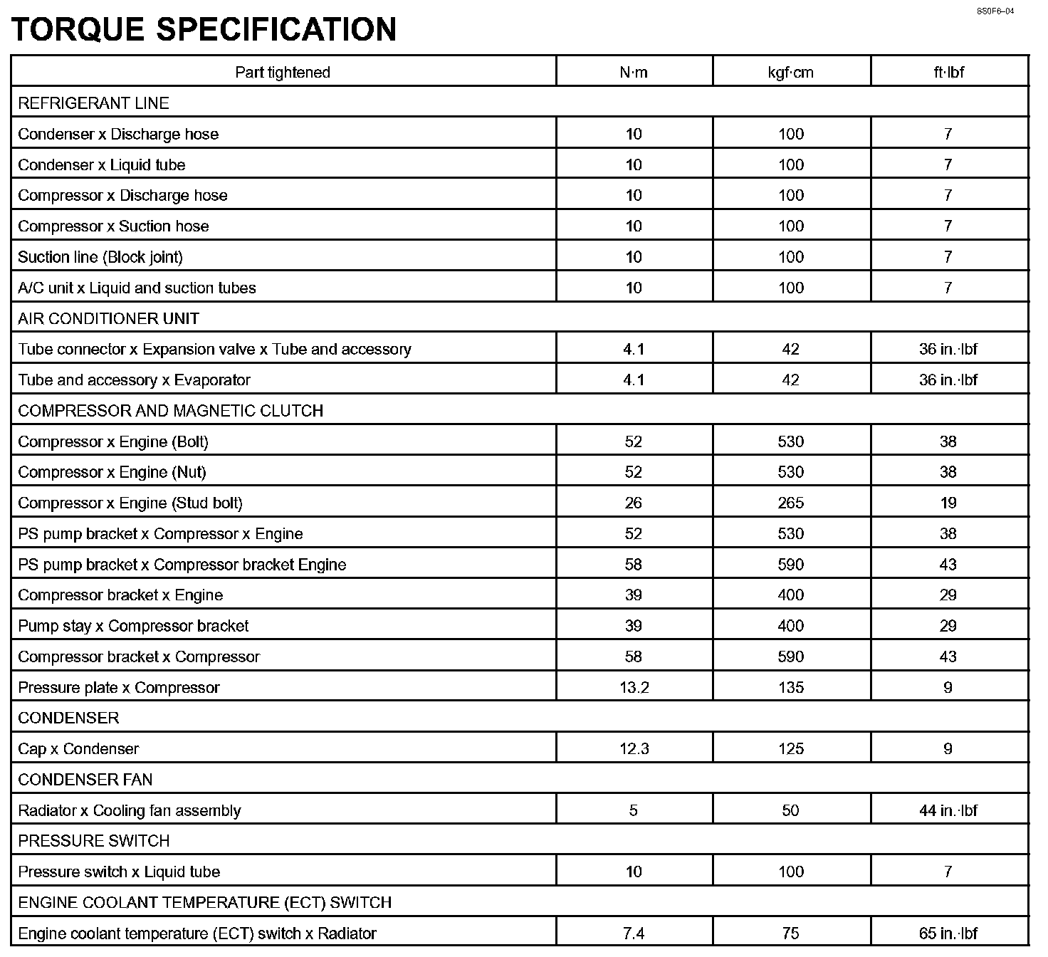 Air Conditioning - Torque Specification: