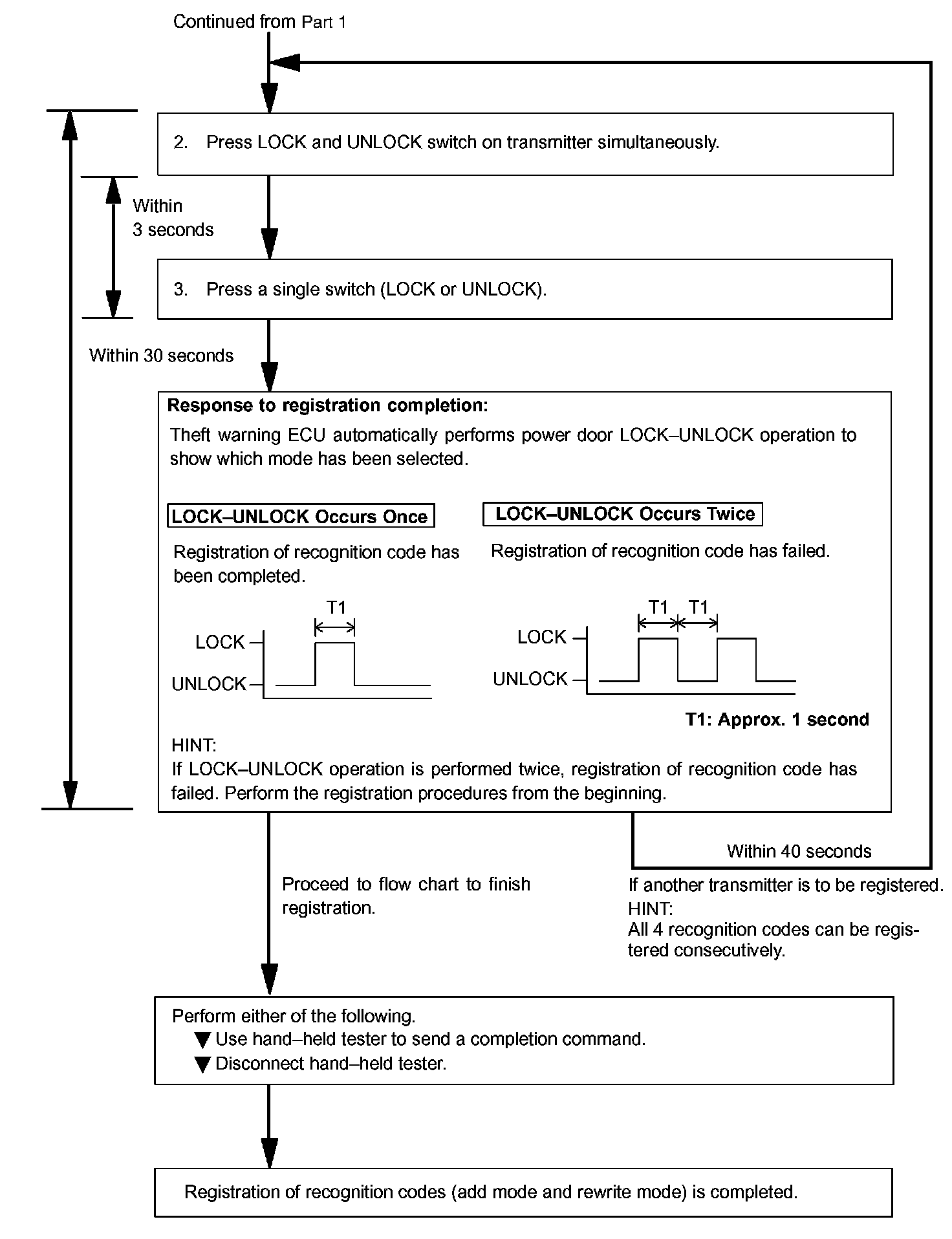 - Recognition code registration is necessary when replacing the door control transmitter or the door control receiver. The key has 2 codes: the key code (immobilizer code) and wireless code. All of these cod types need to be registered. Refer to the key code (immobilizer code) registration procedures. [1][2]Initial Inspection and Diagnostic Overview