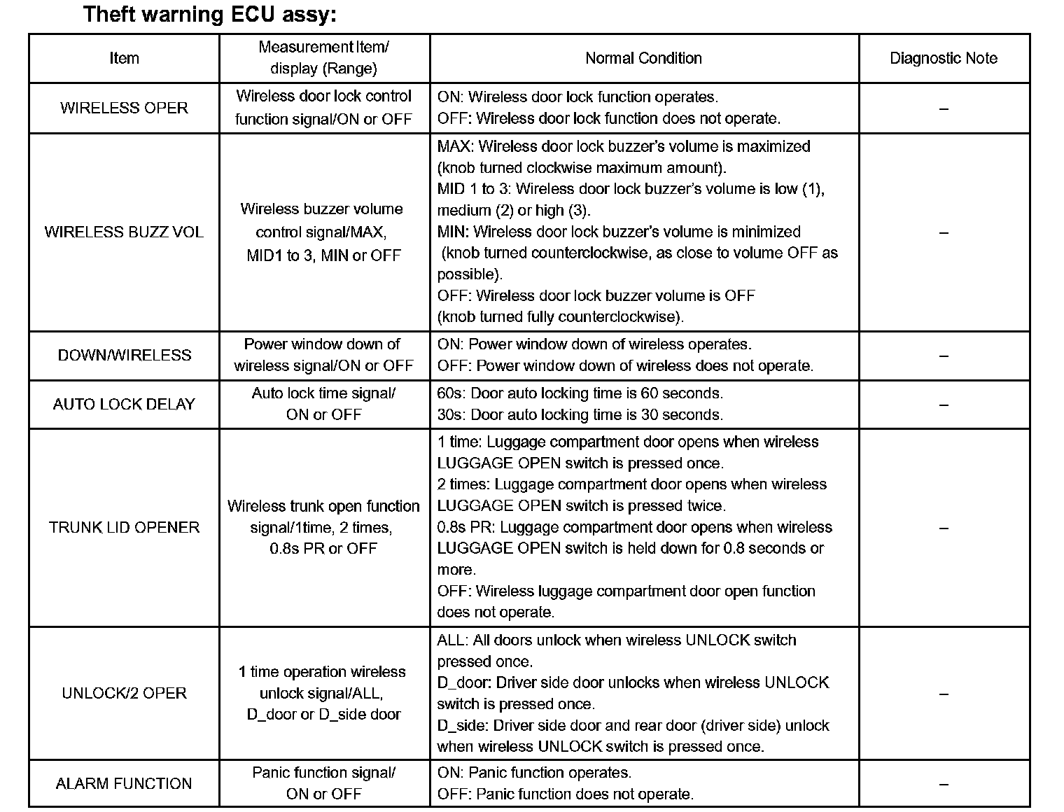 Home >> Lexus >> 2005 >> LS 430 V8-4.3L (3UZ-FE) >> Repair and Diagnosis >> Body and Frame >> Locks >> Keyless Entry >> Testing and Inspection >> Scan Tool Testing and Procedures >> Wireless Door Lock Control System (W/O Smart Key System) >> Data List