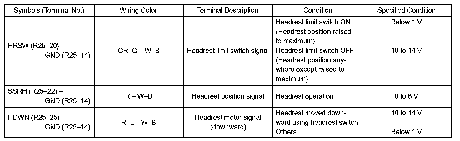 If the result is not as specified, replace the seat ECU may have a malfunction.