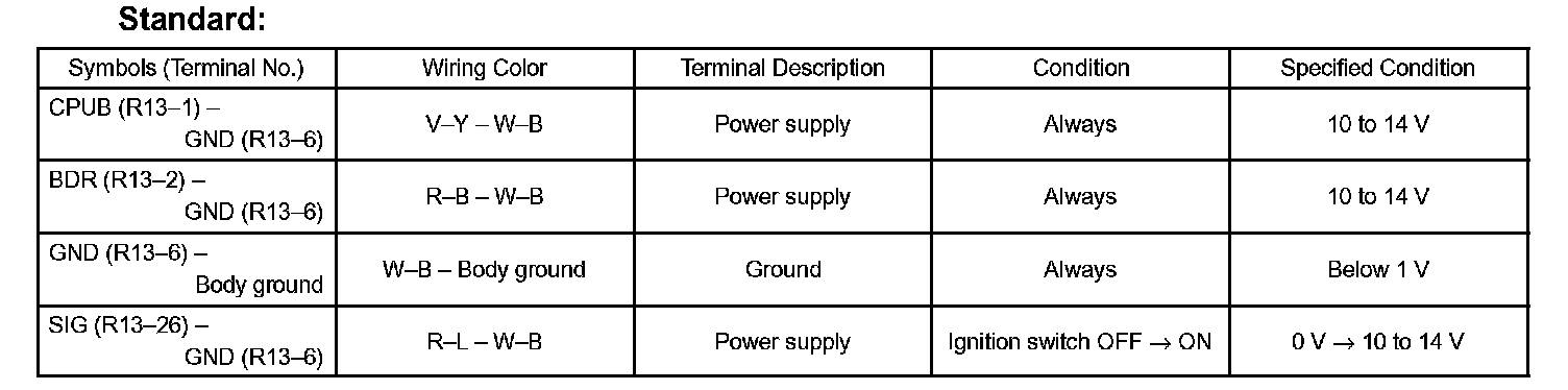 b. Measure the voltage of each terminal of the wire harness side connector.