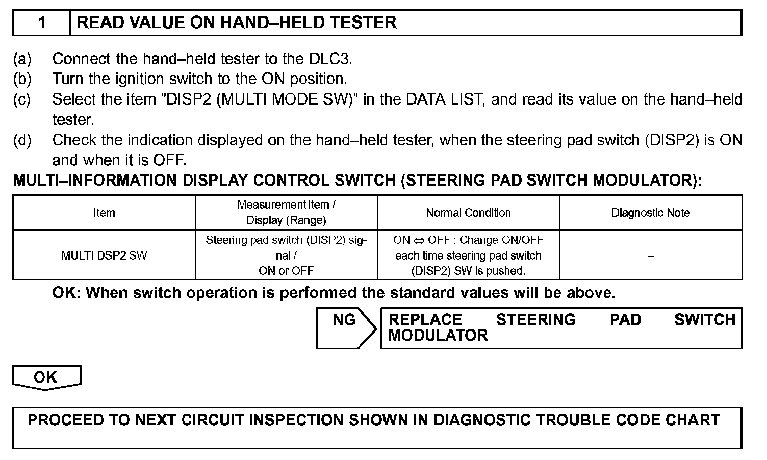 The steering pad switch modulator uses BEAN to communicate with each ECU. Therefore it does not have a direct connection with the ECM. If there are any malfunctions in the communication line of the steering pad switch modulator, one or more DTCs in the multiplex communication system is/are output.