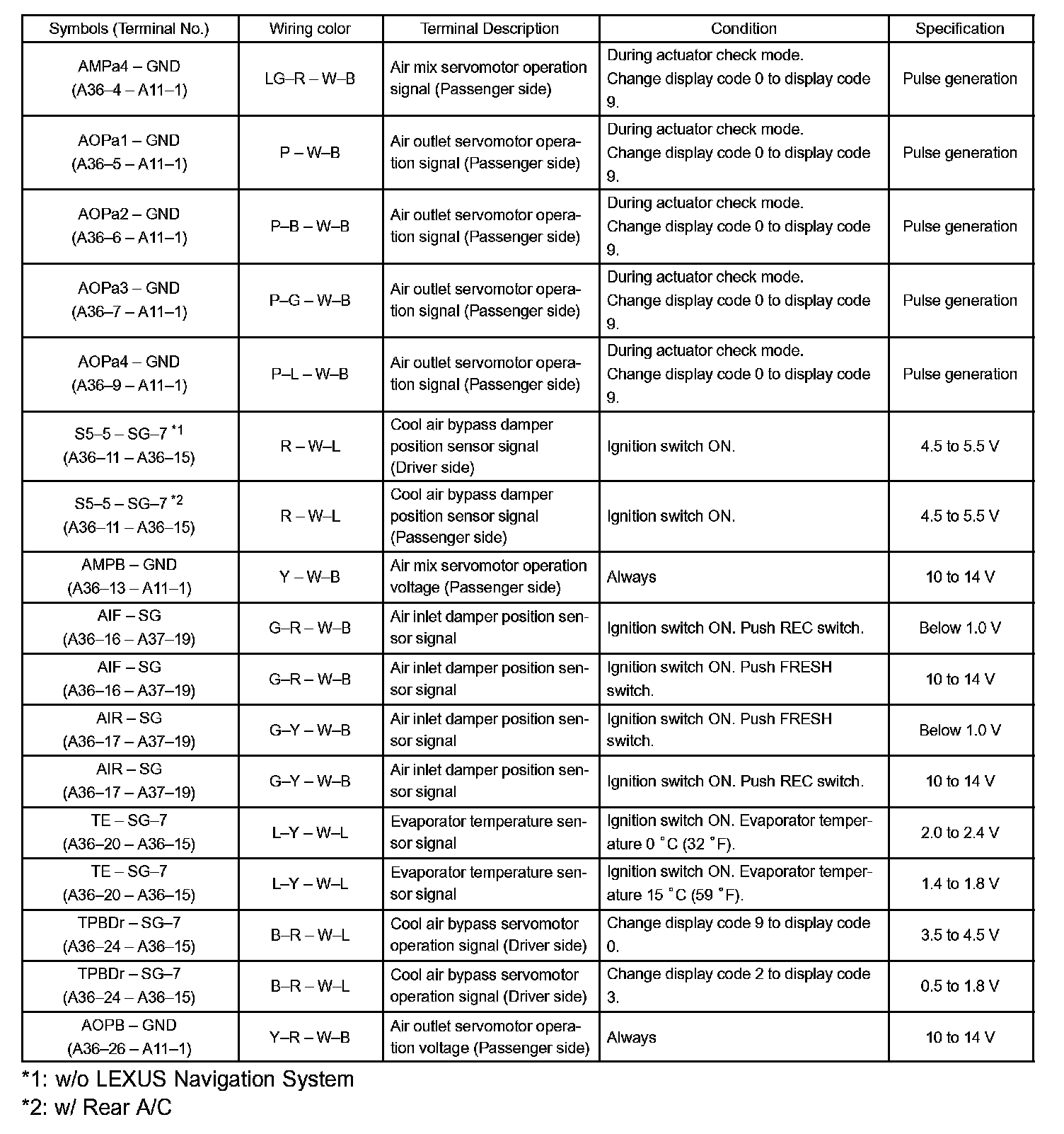 Terminals Of Control Module / Pinouts Part 1 (Air Conditioning Amplifier):