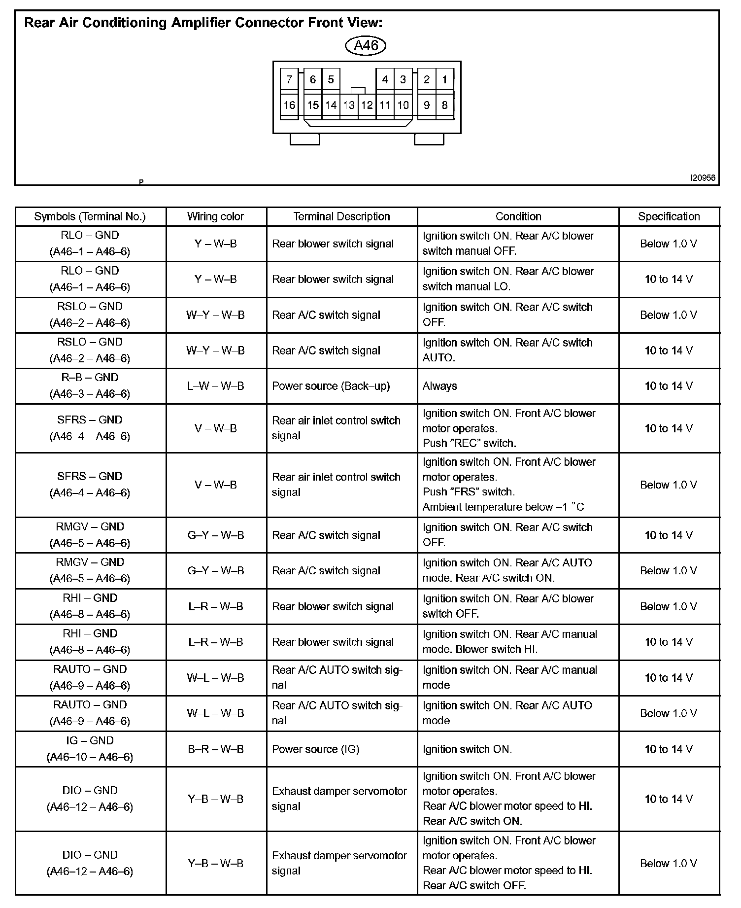 Terminals Of Control Module / Pinouts Part 1 (Rear Air Conditioning Amplifier):