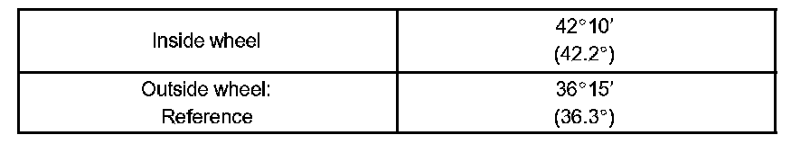 If the right and left inside wheel angles differ from the specified value, check and adjust the right and left rack end lengths.