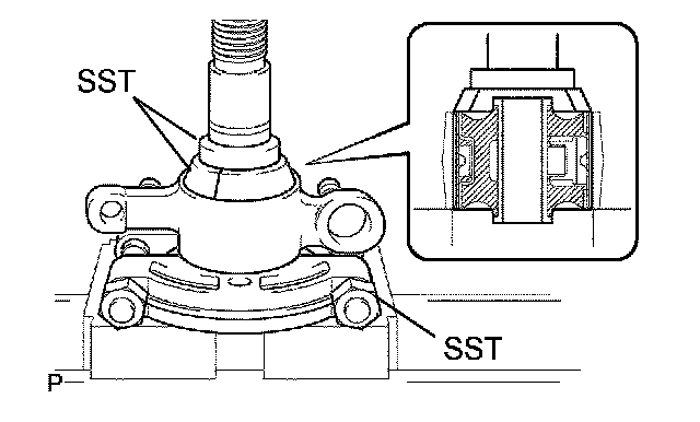 e. Using SST and a press, reinstall a bushing as shown in the illustration.