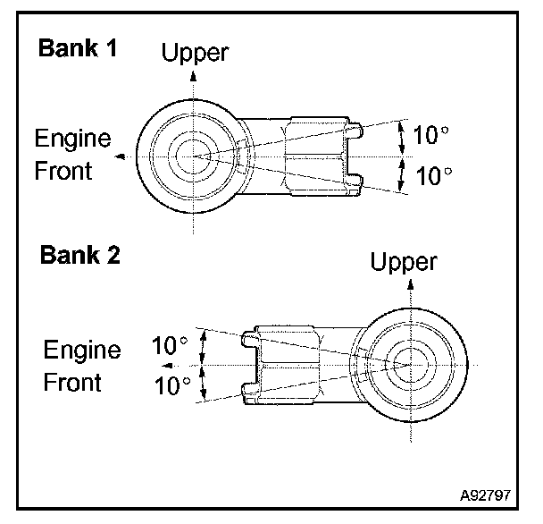 a. Install the 2 knock sensors with the 2 nuts, as shown in the illustration.