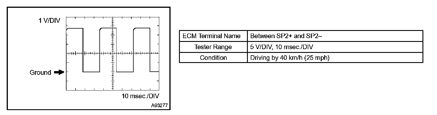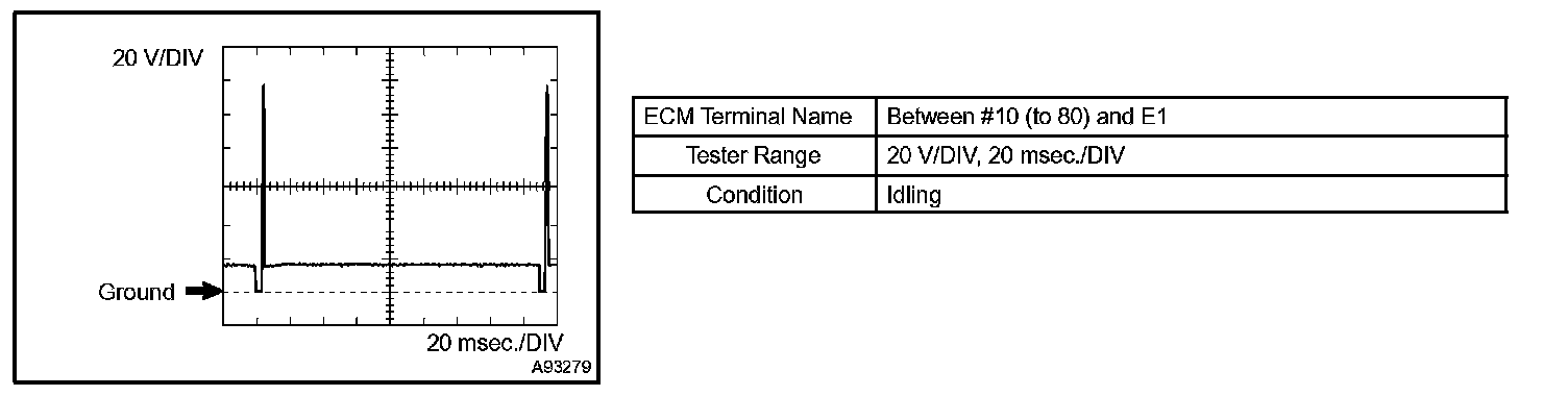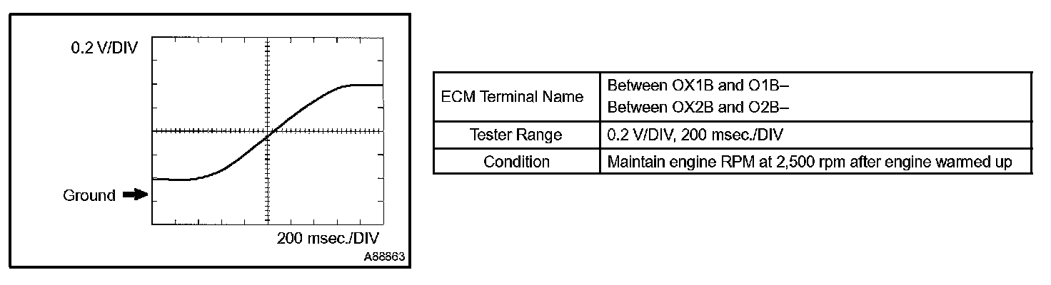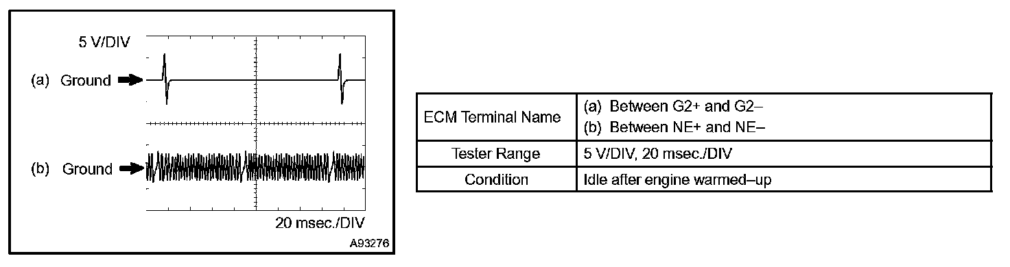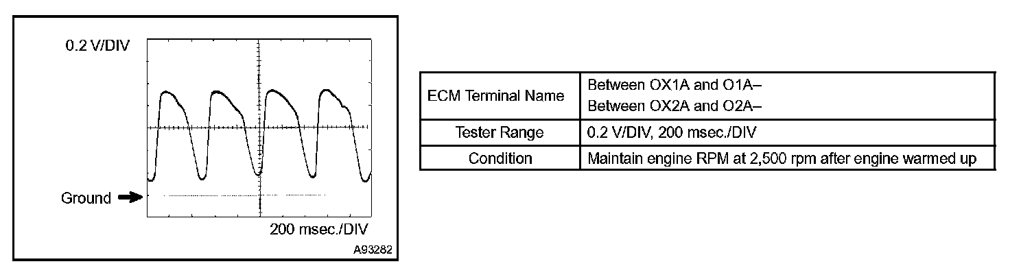 HINT: The wavelength becomes shorter as engine rpm increases. The waveforms and amplitudes displayed differ slightly depending on the vehicle.