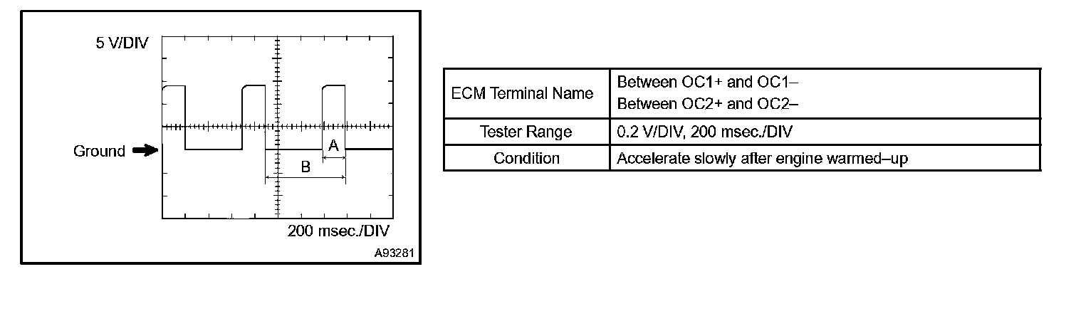 HINT: The duty ratio (labeled A and B in the illustration) changes depending on the engine coolant temperature.
