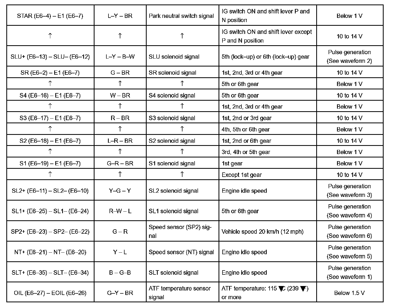Pinout Values and Diagnostic Parameters