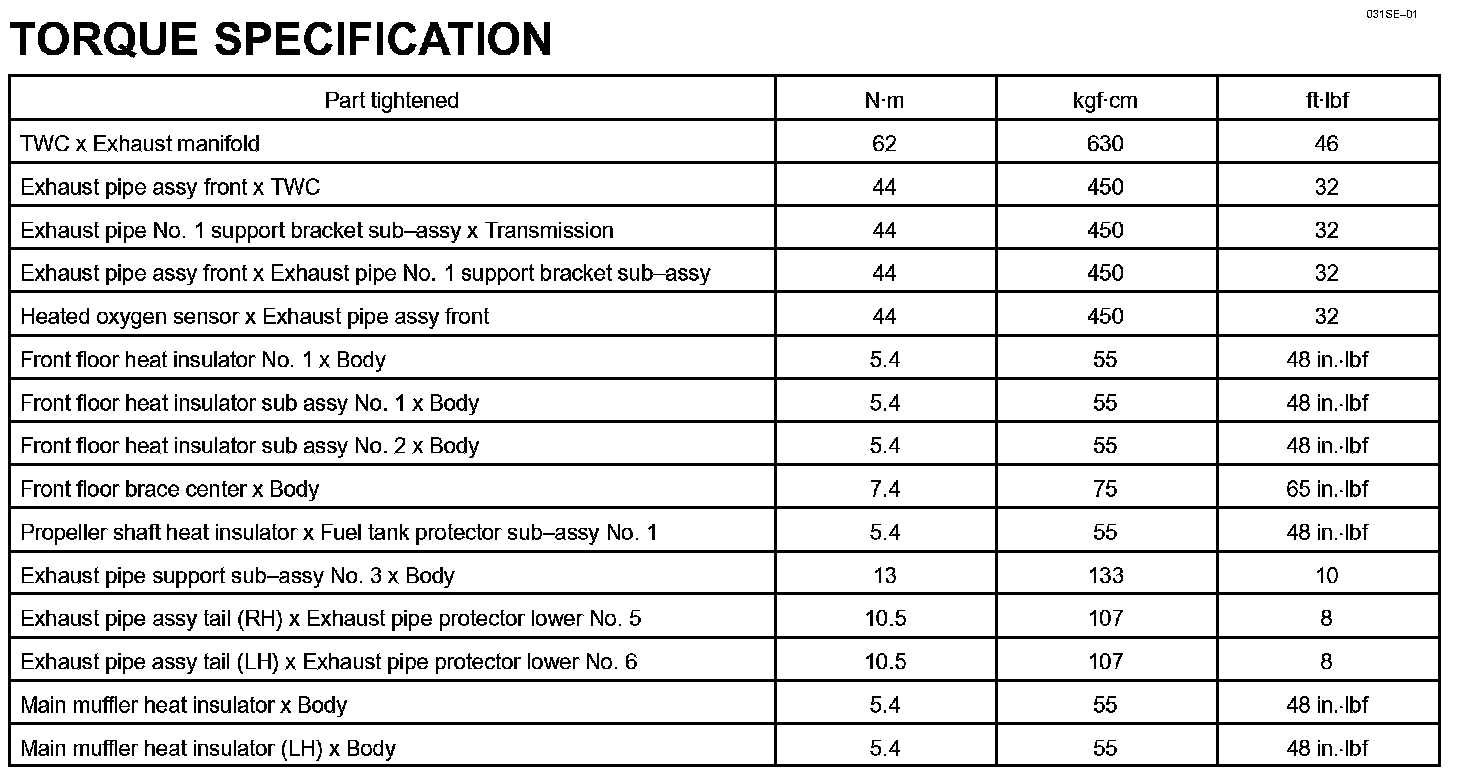 Exhaust - Torque Specification: