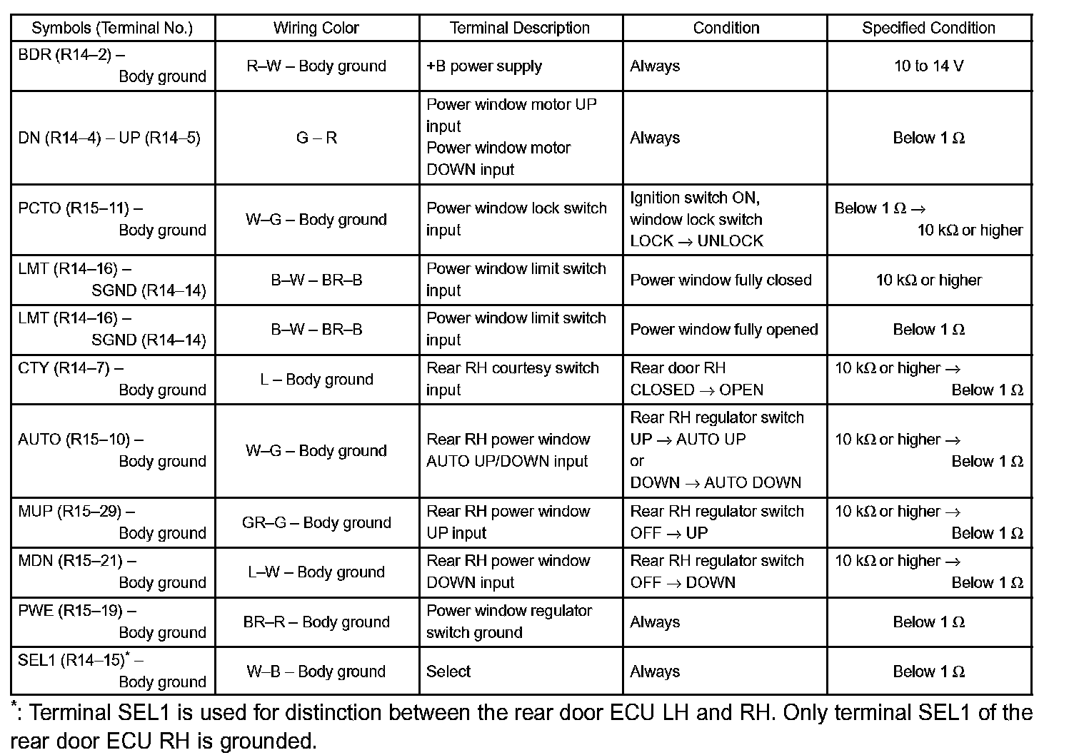 If the result is not as specified, the rear door RH ECU may have a malfunction.