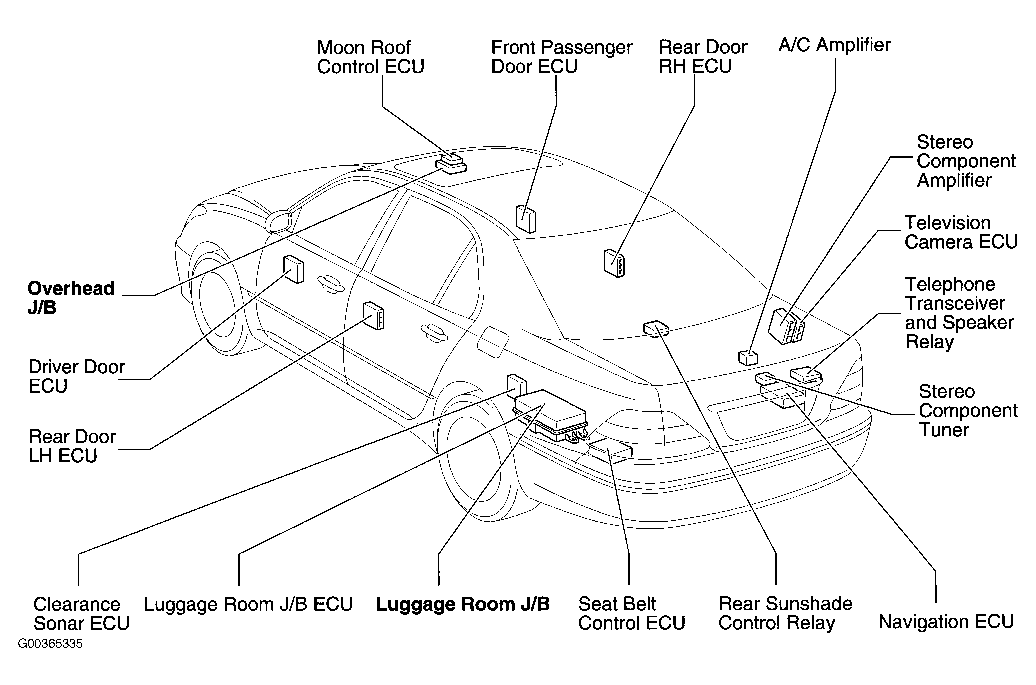 | Luggage Room J/B | On left side of luggage compartment. See Figure. |