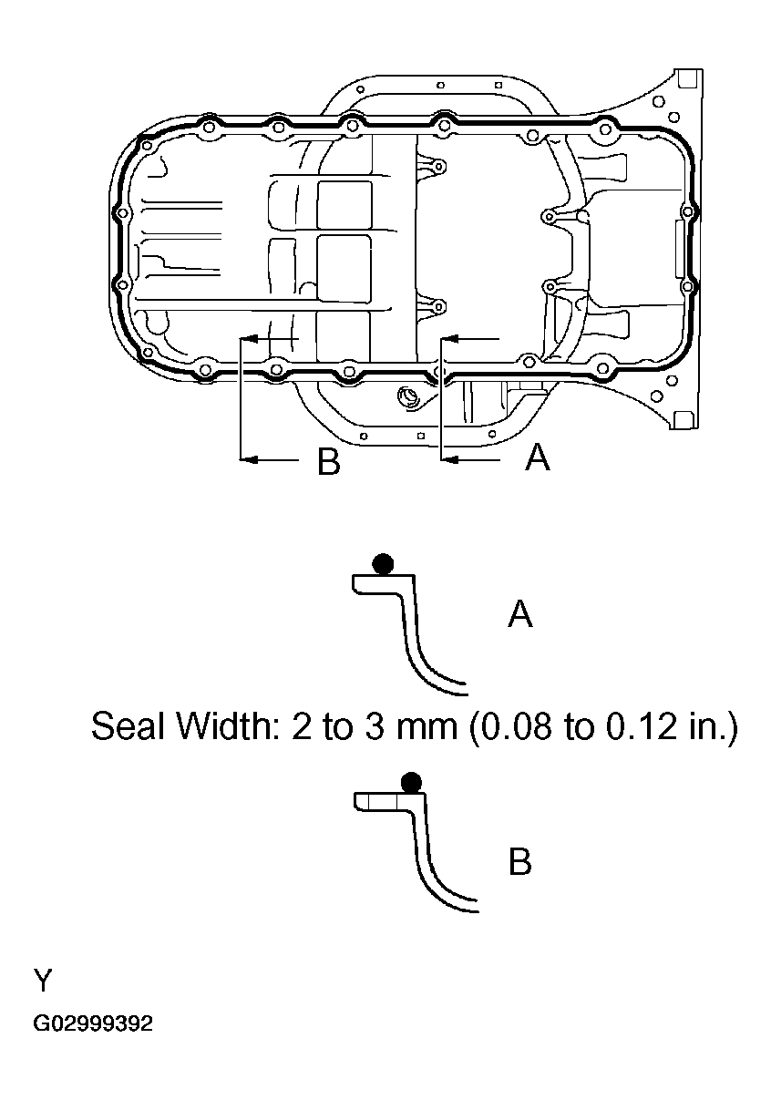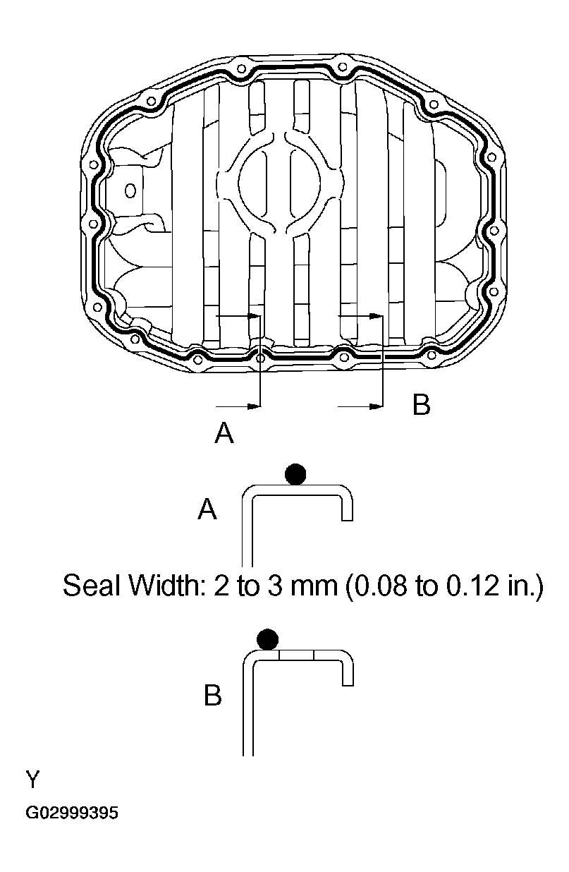 - Install the oil pan within 3 minutes after applying seal packing.