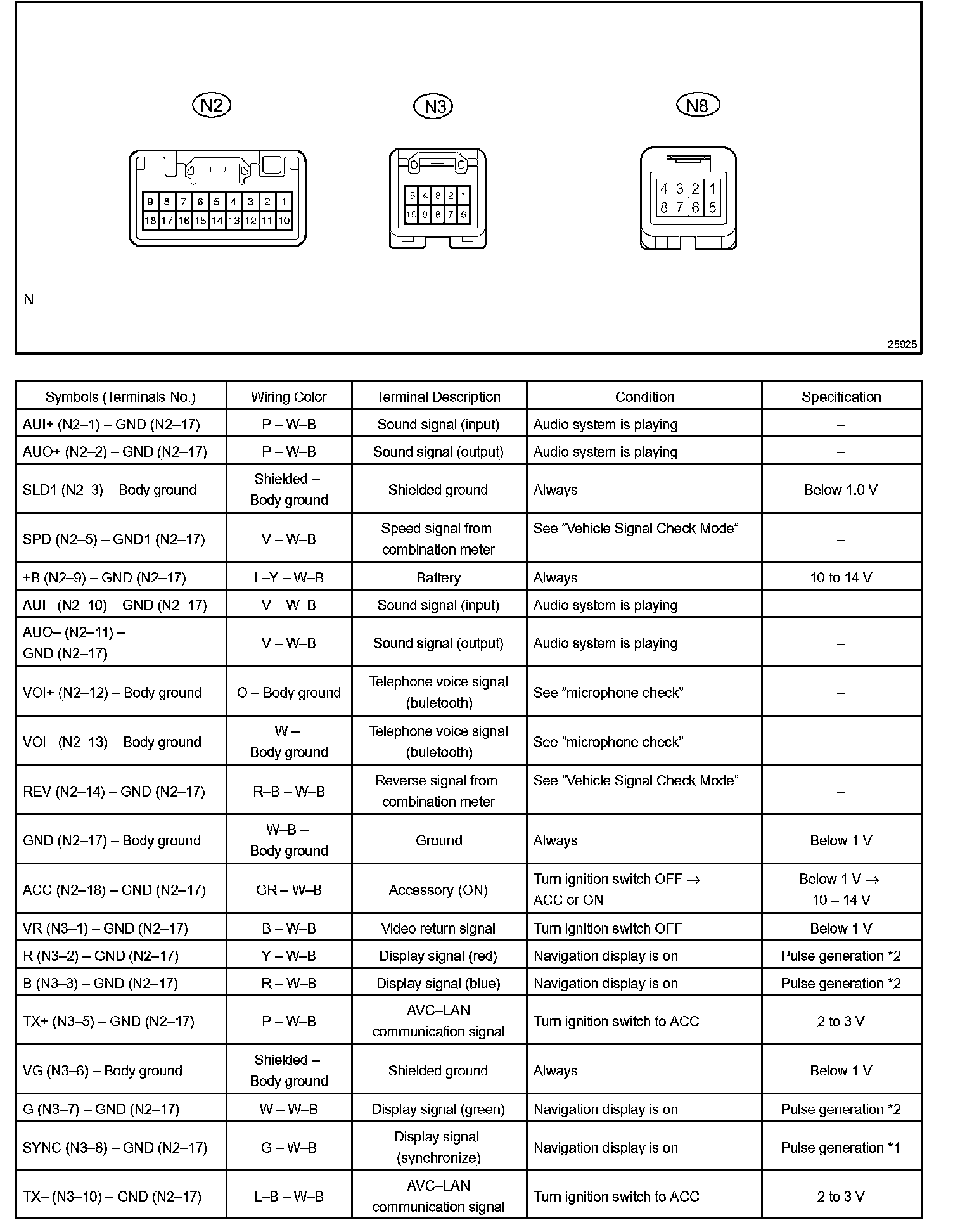 Terminals Of Control Module/Pinouts - Navigation ECU Part 2: