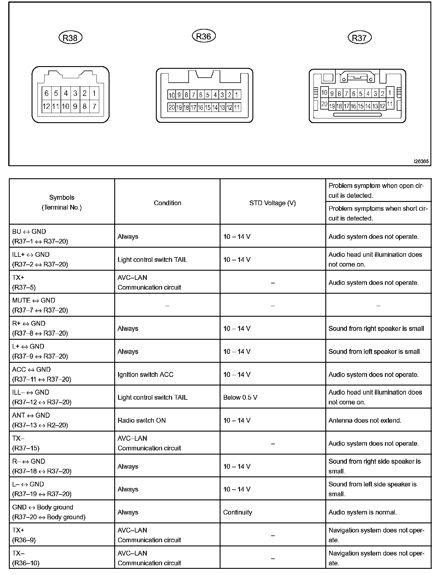 Terminals Of Control Module/Pinouts - Radio Receiver Assembly Part 2: