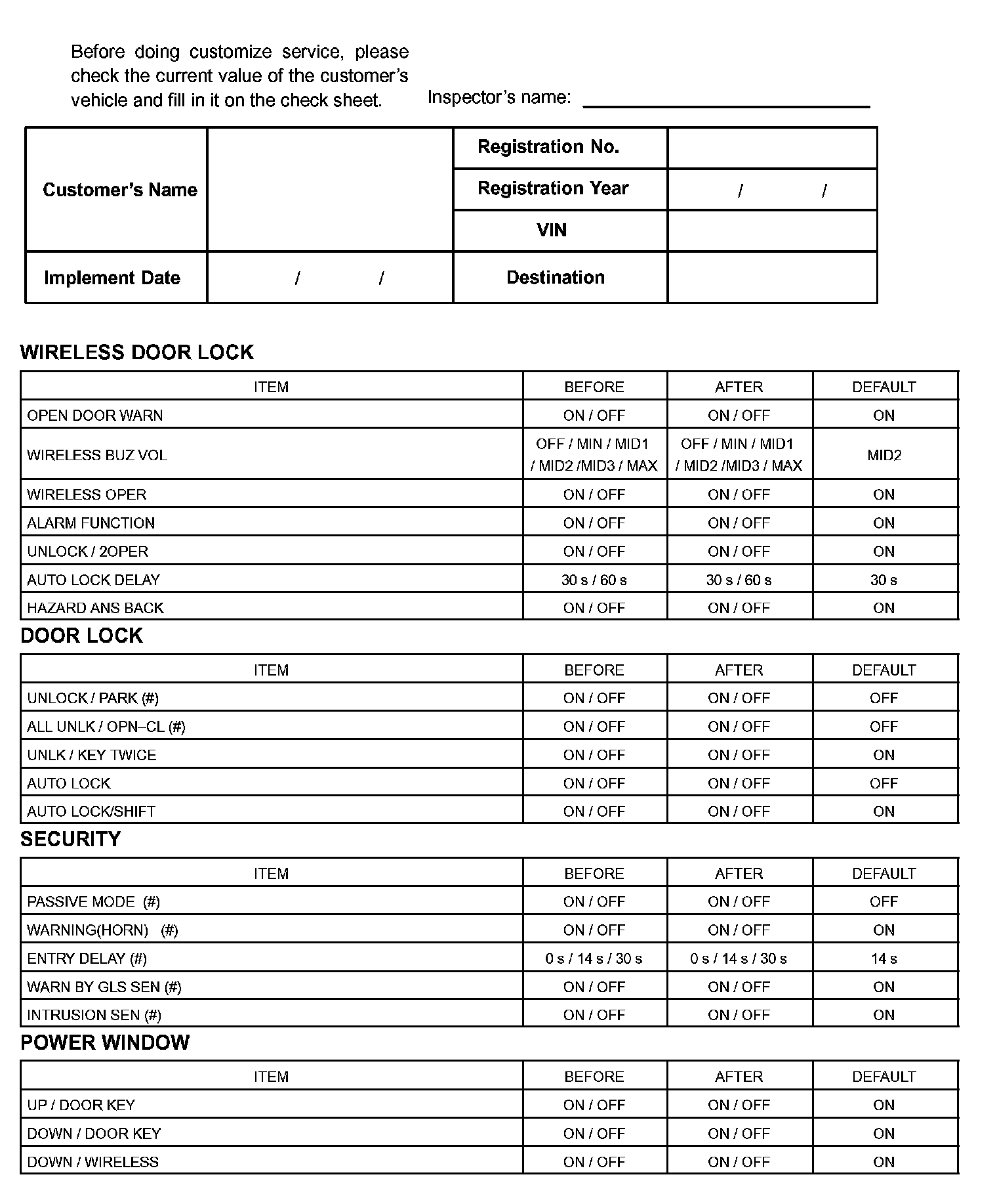 - Be sure to record the current value before customizing. (You can use the attached customize check sheet.)