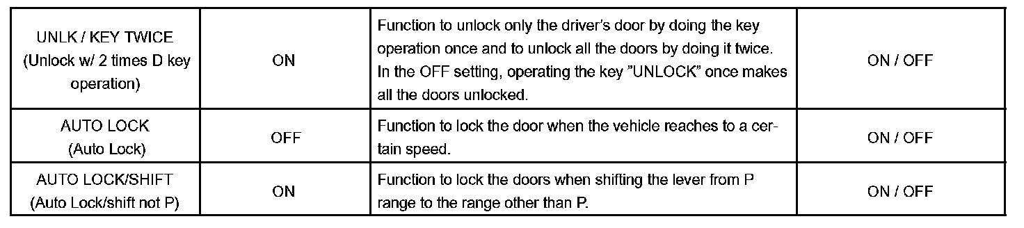 CUSTOMIZE PARAMETERSThe followings are the possible items to be customized.