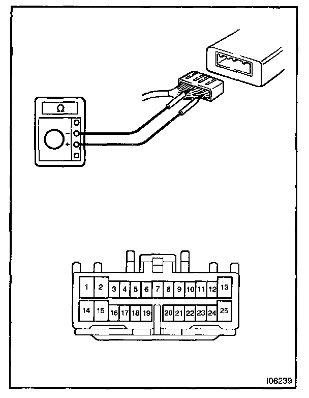 Connect the connectors and using a voltmeter with high impedance (10 kohms/V minimum), measure the voltage at each terminal and body ground.