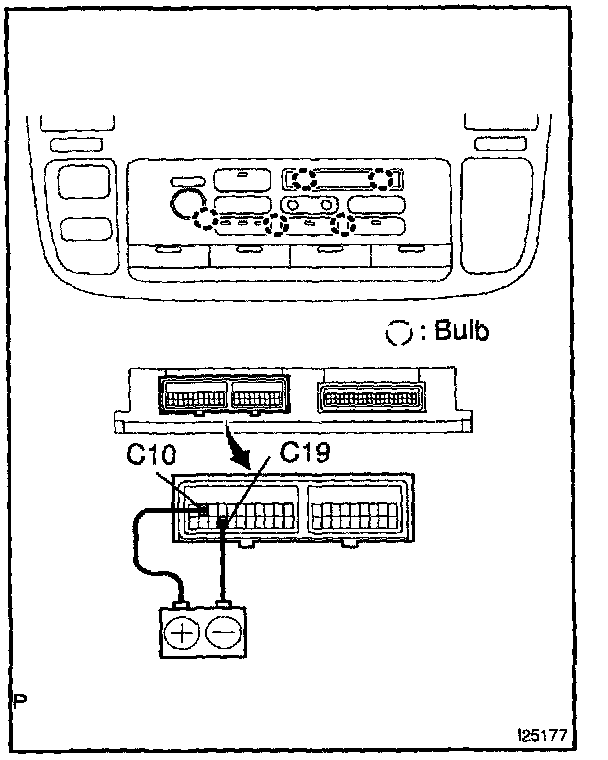 a. Connect the positive (+) lead from the battery to terminal C10 and negative (-) lead to terminal C19 then check that the indicators' illuminate.