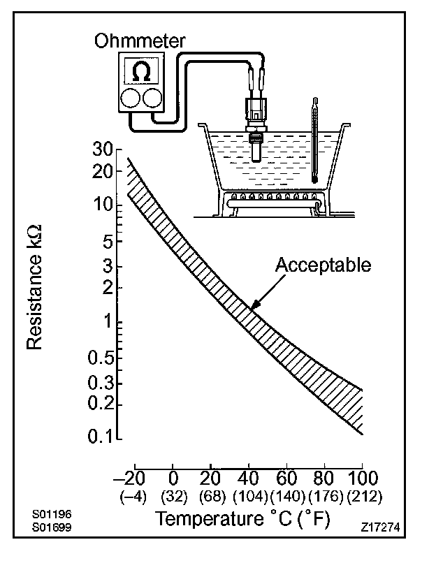 Coolant Temperature Sensor/Switch (For Computer): Testing and Inspection