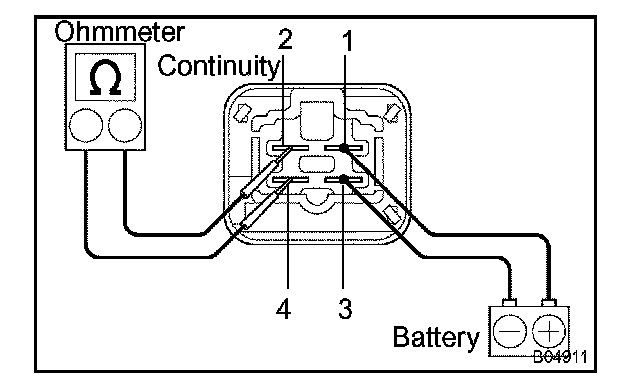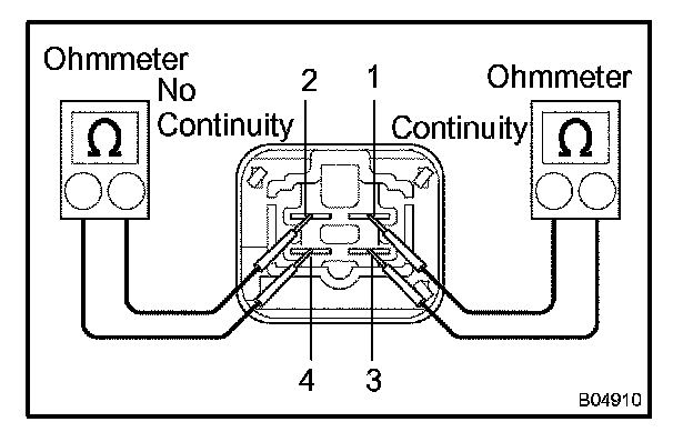 2. Using an ohmmeter, check that there is a continuity between terminal 2 and 4.