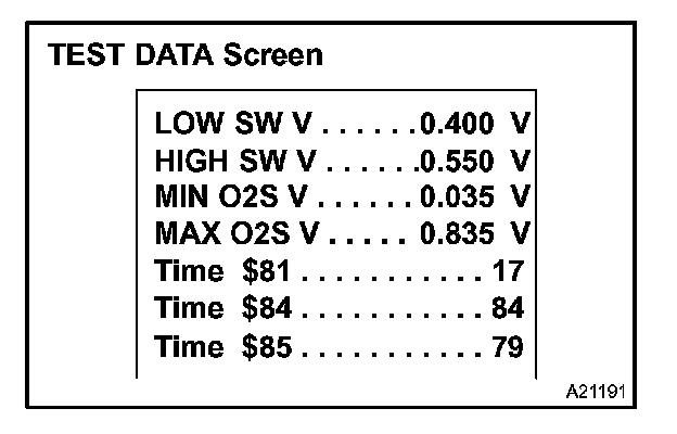 The ECM monitors the O2S in the various items. You can read the monitor result (TEST DATA) of each monitor item using the O2S TEST RESULT. However, the output value of the TEST DATA is the latest "snapshot" value that is taken after monitoring and therefore is not dynamic.