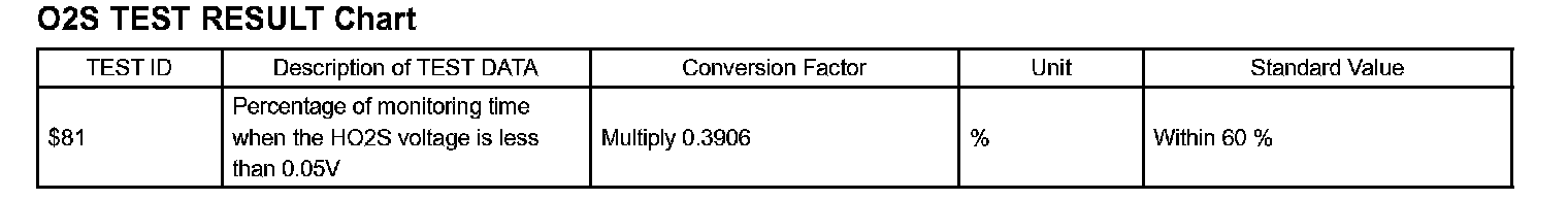 2. Find the Conversion Factor value of "TIME $81" in the O2S TEST RESULT chart. 0.3906 is specified for $81 in this chart.
