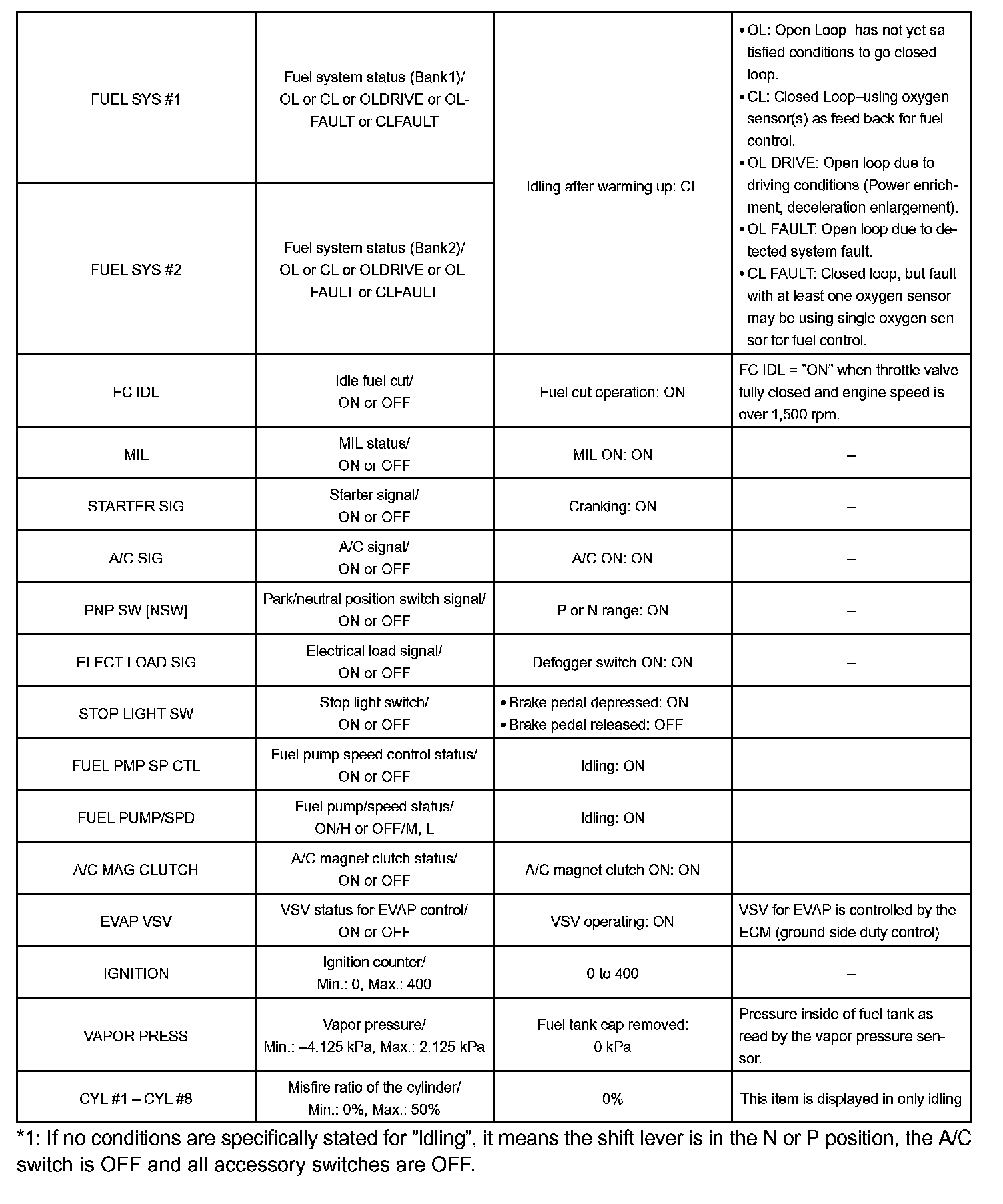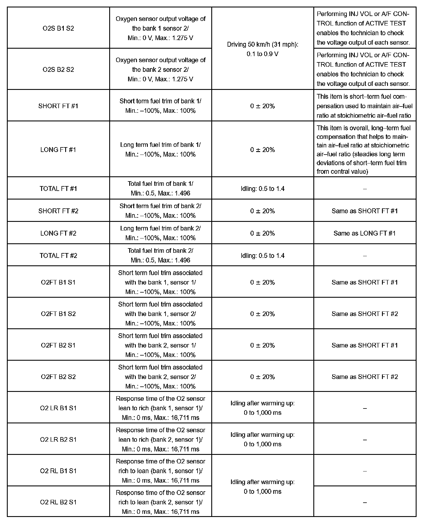 DATA LISTHINT: Using the hand-held tester DATA LIST allows switch, sensor, actuator and other item values to be read without removing any parts. Reading the DATA LIST early in troubleshooting is one way to shorten labor time.