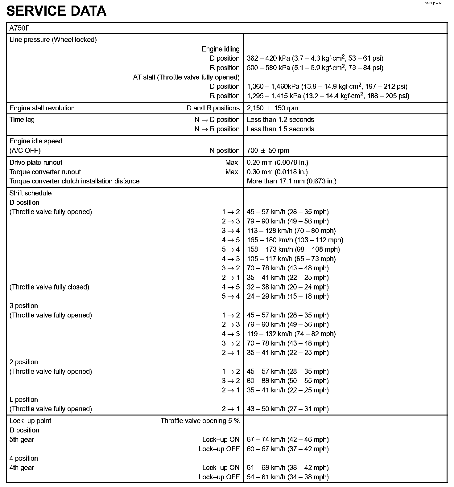 Automatic Transmission - Service Data: