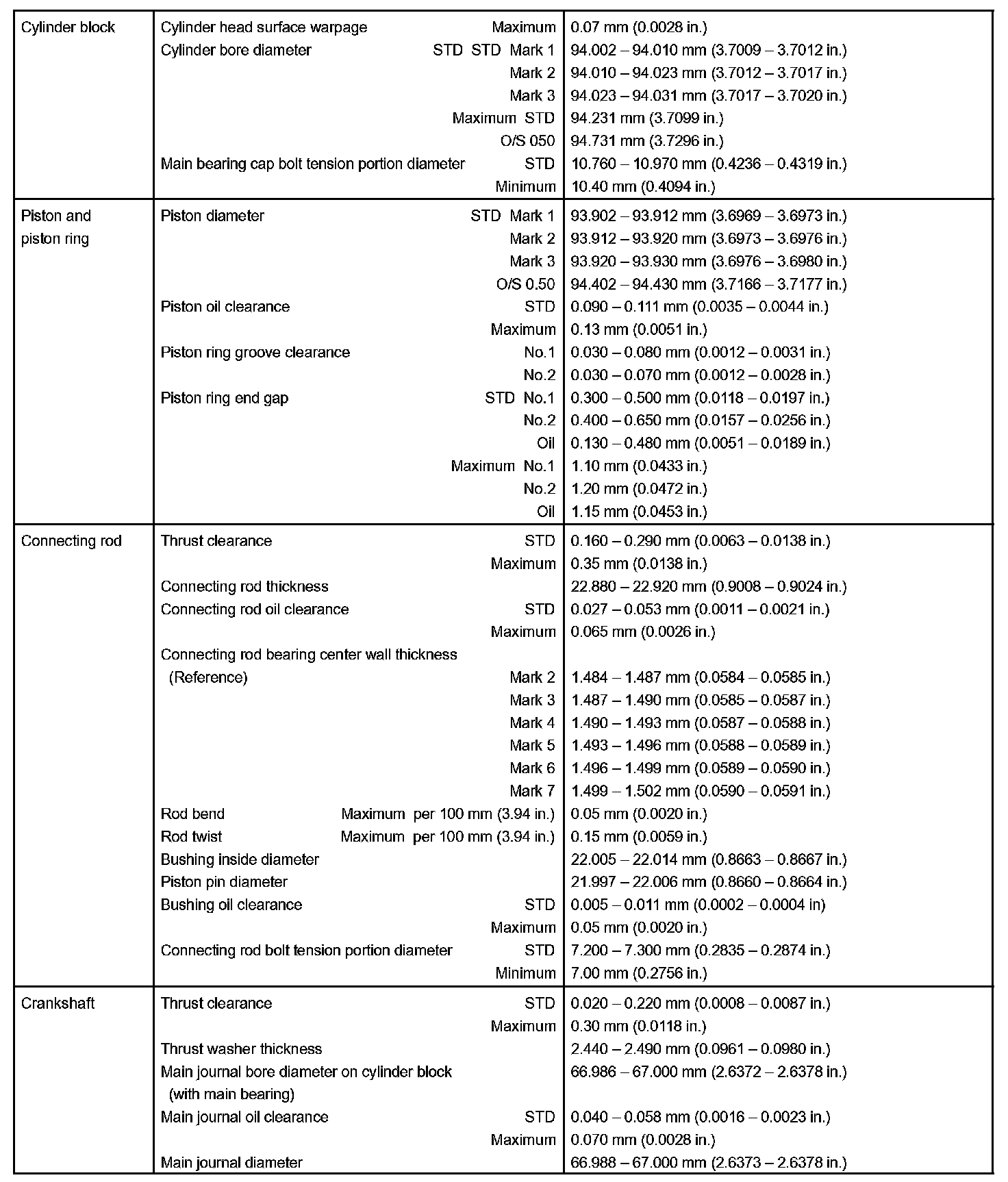 Engine Mechanical - Service Data